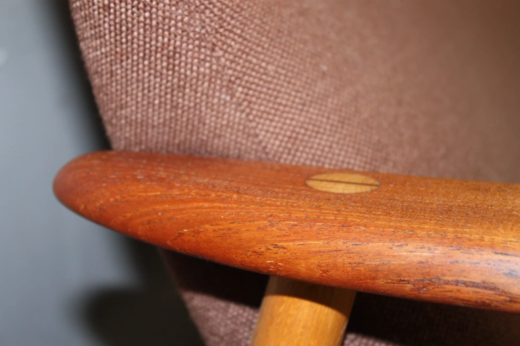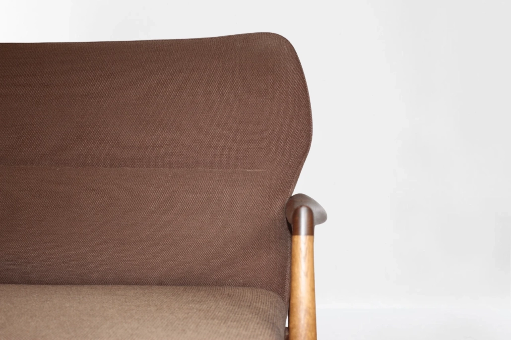 - Materiaal: Frame van teakhout originele bruine vintage meubelstof.
