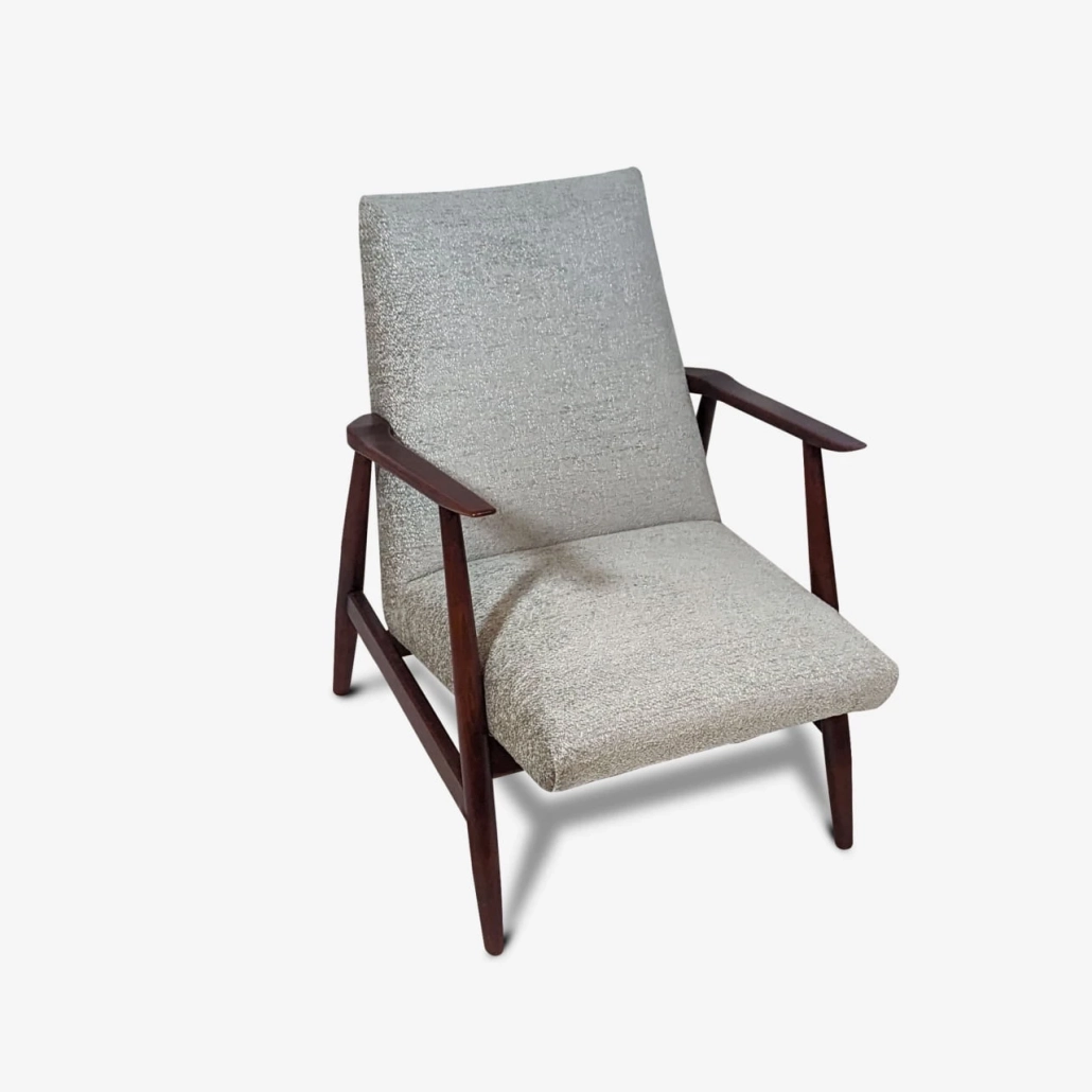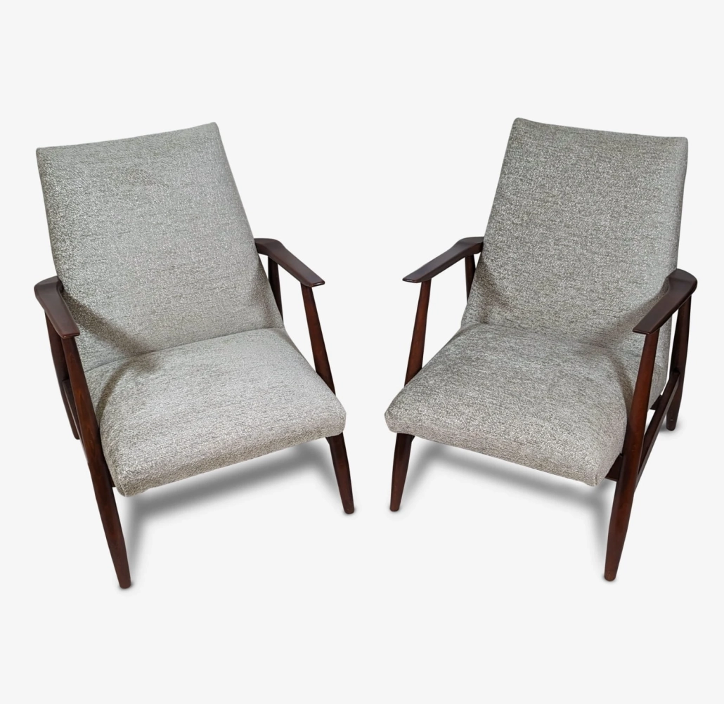 Deze set van twee Deense vintage fauteuils ademt de tijdloze charme en het vakmanschap van Scandinavisch design. Hoewel de ontwerper en fabrikant onbekend zijn, weerspiegelt het ontwerp de verfijnde eenvoud en functionaliteit die zo kenmerkend zijn voor Deense meubelstukken uit het midden van de vorige eeuw.